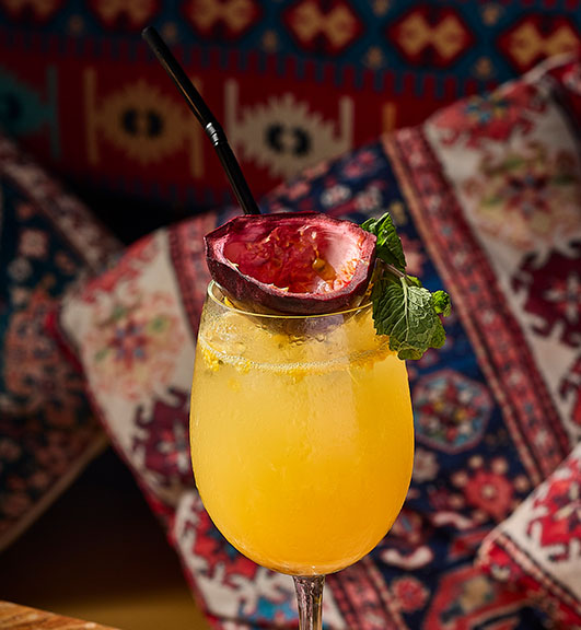 Fresh Mints, Fresh Passion Fruit, Passion Fruit Syrup, Citrus, Soda